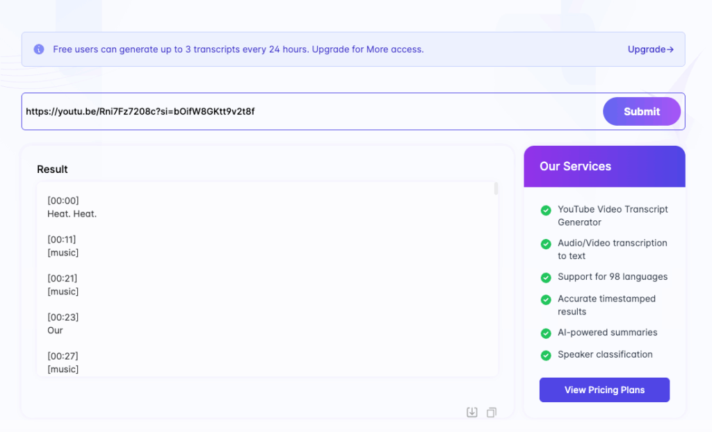 Tool 3: Video Transcriber AI – Free Unlimited YouTube Video Transcriber Online
